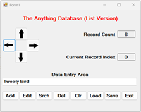 You saw something similar to this if you watched videos in the Speed Track section. There we built a database-like application using the ListBox to store data. I put together a similar application for this lesson. However, instead of using a ListBox, I used a List. And since all the data is in memory and invisible to the user, I used a label to display one element in the List and provided the user with a set of navigation buttons so the user can step through the list. This is a very common function when working with database applications.