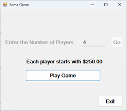 This class can be used in any game and provides the dice roll function and a specific dollar amount for each player.