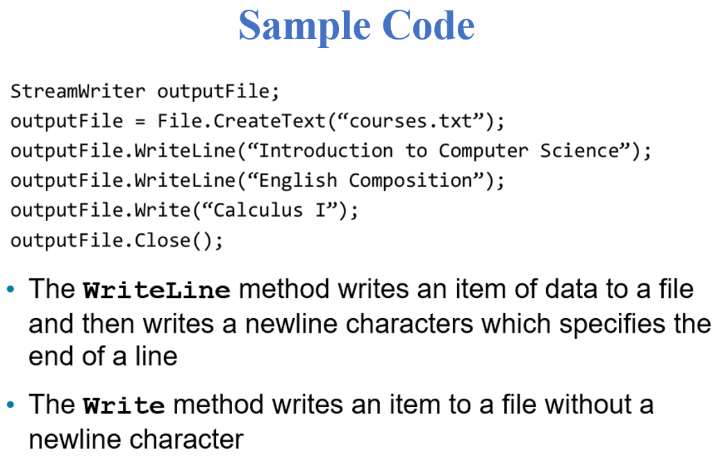 Up to now no matter how much data we entered into our text boxes, when the power was turn off everything entered was gone. No more. This section is going to teach us how we can take our data, save it somewhere safe so we can turn off our machines, go home, have dinner, get some rest, and come back the next day and find our previous days work waiting for us where we left it. PDF: File Processing Slides